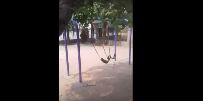 Pavor fue lo que ocasionó el movimiento de un columpio en un parque de Nueva Delhi​, quien grababa no tuvo más reacción que salir corriendo.