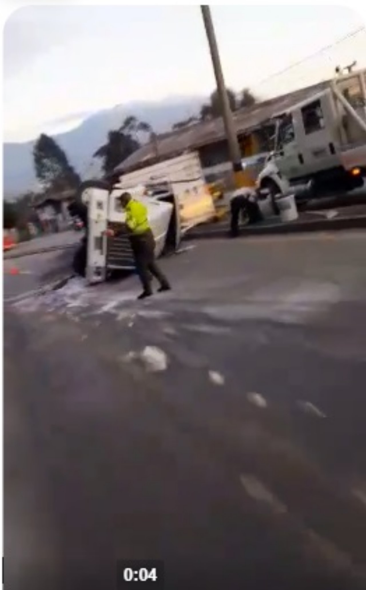 VIDEO. Se volcó una mula en la autopista Medellín – Bogotá