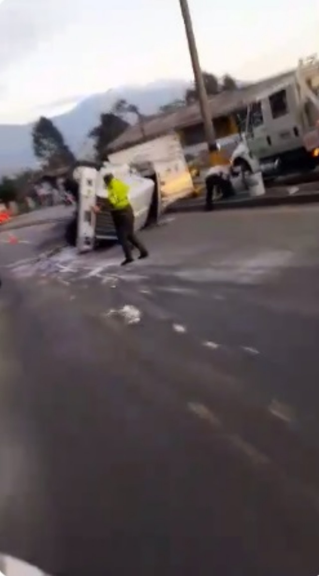 De acuerdo con el reporte del ciudadano, una mula habría perdido el control y terminó volcada a 200 metros del peaje de Copacabana.