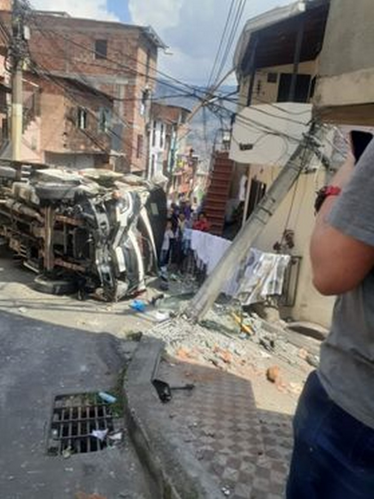 De acuerdo al reporte ciudadano, al parecer, un carro se quedó sin frenos, por lo que sufrió volcamiento lateral y quedó en plena vía pública.
