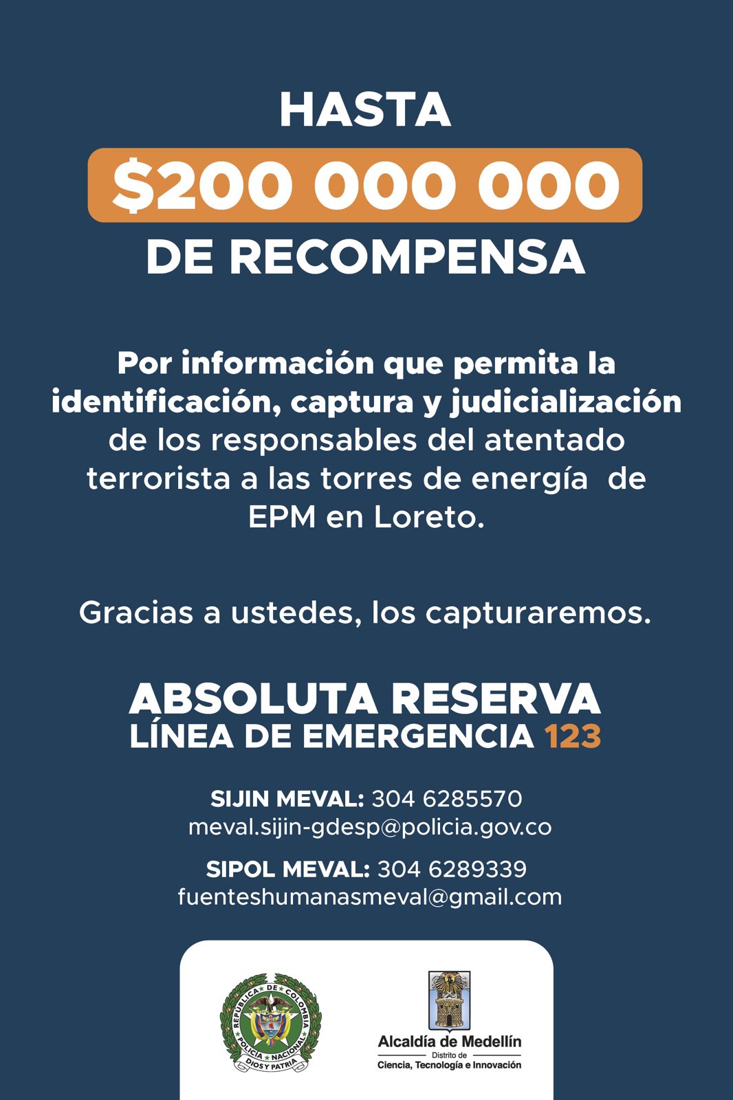 Se ofrecen hasta $50 millones por datos que permitan prevenir y contrarrestar actos de terrorismo.