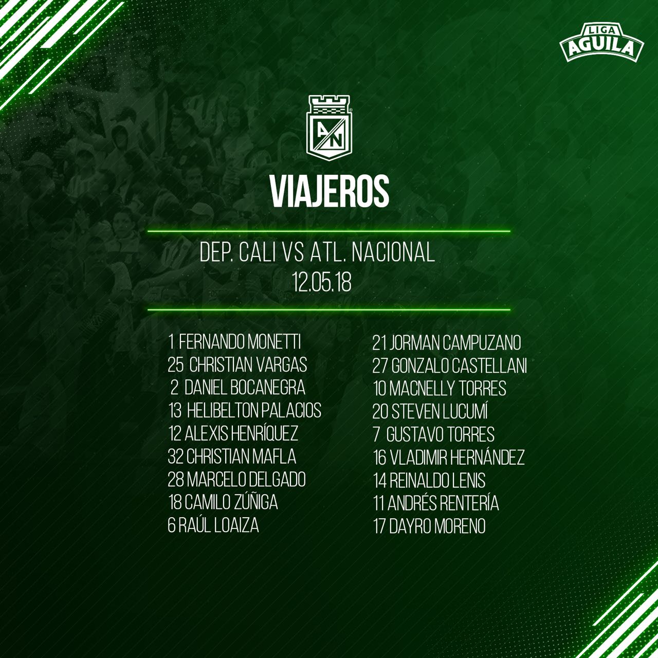 Minuto30.com- Atlético Nacional tendrá dos bajas para enfrentar este sábado a Deportivo Cali, en Palmaseca, en el partido de ida de los cuartos de final de la Liga Águila I-2018.