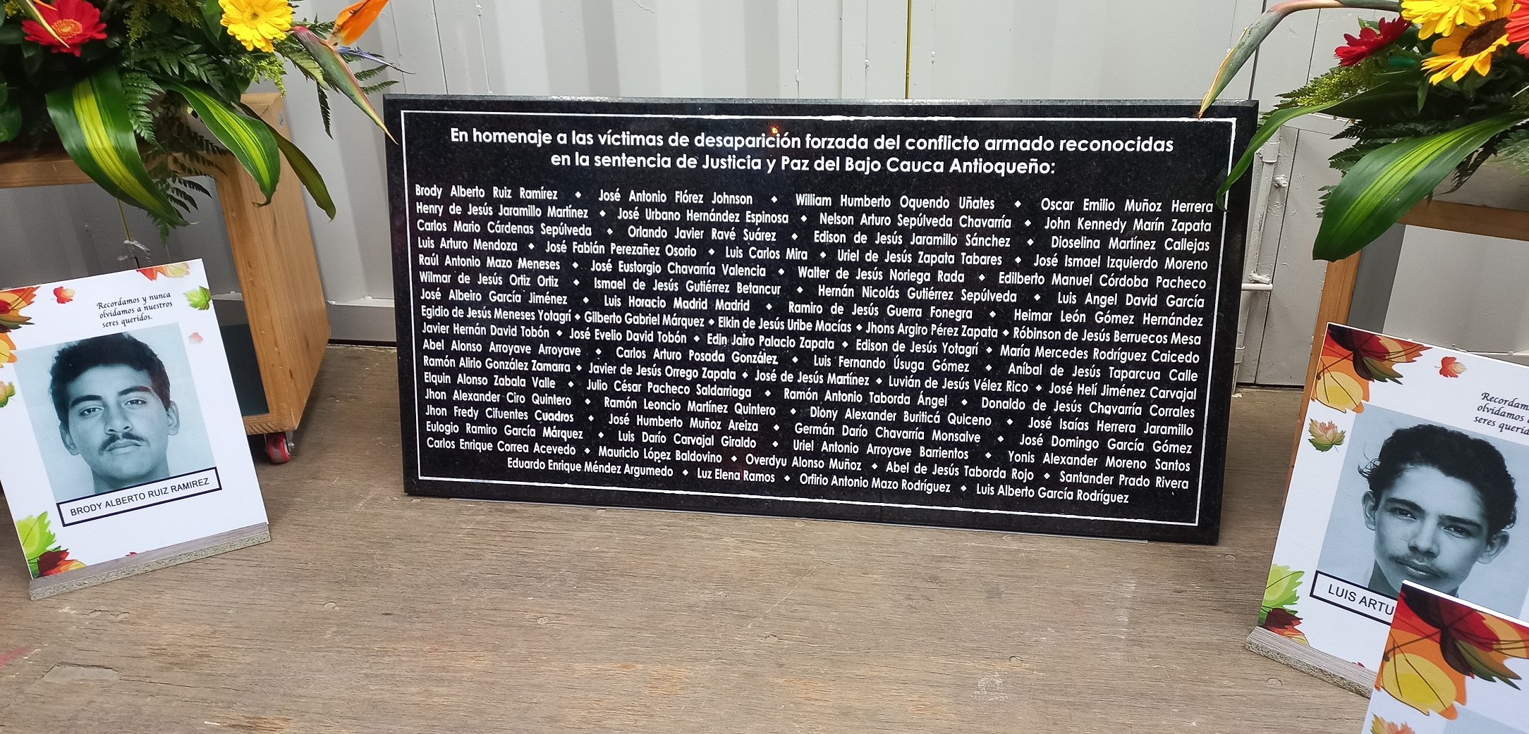 Para rendirles honor, la Unidad para las Víctimas y Fiscalía, quienes coordinaron el evento, revelaron una placa conmemorativa en mármol negro con los nombres de 73 víctimas del paramilitarismo para rendirles memoria y, a la vez, dejar prueba visible del crimen atroz y el drama de una búsqueda incansable.