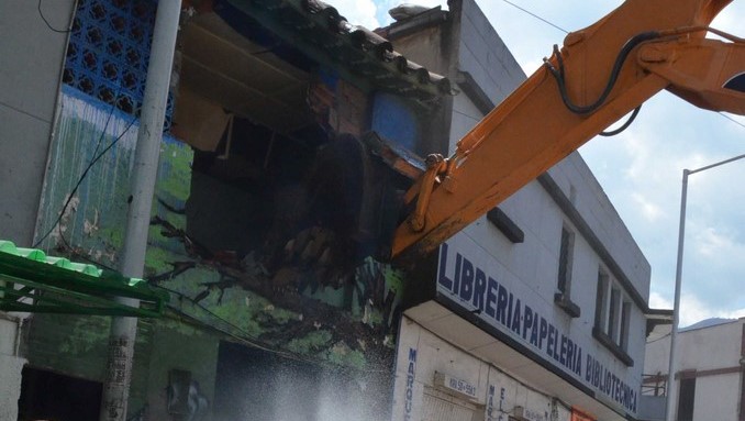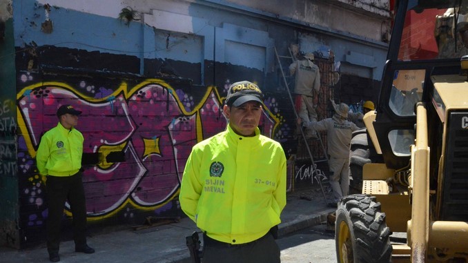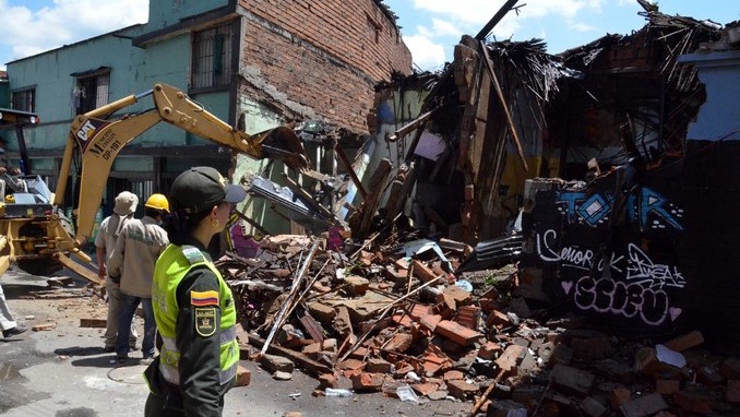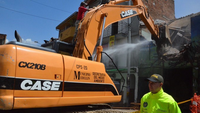 “Para realizar la demolición es necesaria la utilización de volquetas para remoción de escombros y limpieza de los lotes, una retroexcavadora tipo oruga y un camión dispensador de agua a presión”, informó la Policía Nacional en un comunicado.