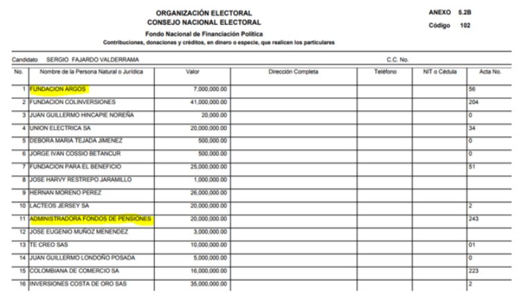 Sergio Fajardo se encuentra rodeado de varios de los grupos económicos más importantes de Colombia, situación que podría ejercer múltiples presiones en un largo juego de interés a la hora de gobernar. la Familia Santo Domingo. El grupo Valorem es dueño de Caracol Televisión, Blu Radio, La Kalle, El Espectador, Cine Colombia, y las revistas Cromos y Shock, tiene inversiones en Koba Colombia, propietaria de D1, es dueño de la administradora de fondos de pensiones y cesantías Porvenir, entre otros. También, hablando de medios de comunicación, ha tenido apoyo económico de RCN.