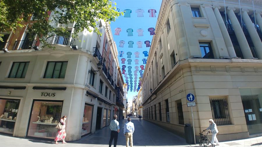 Más de medio centenar de camisetas de los equipos de laLiga han dado este lunes la bienvenida en una de las arterias comerciales principales de Sevilla a la vuelta del fútbol después de tres meses de parón con uno de los clásicos de mayor rivalidad del universo futbolero, el Sevilla-Betis del próximo jueves en el Ramón Sánchez Pizjuán (22.00 horas).