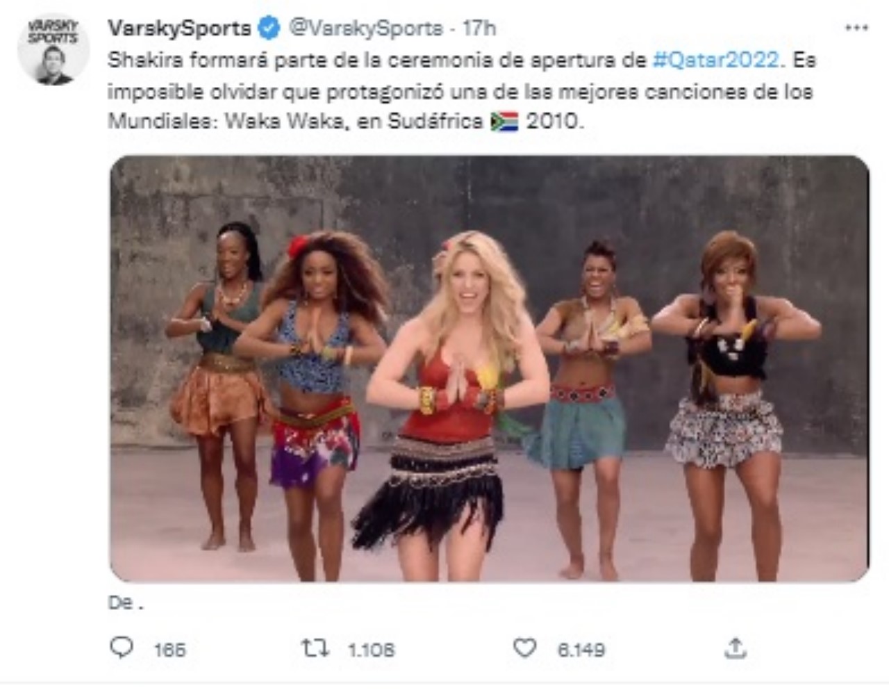 Medios internacionales han afirmado este viernes (11 de noviembre) que Shakira abrirá la ceremonia de apertura del Mundial de Qatar 2022.