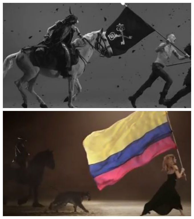 collage plagioAl parecer varias escenas de la canción La La La (Dare) de Shakira, son iguales a las que se ve en el video de Woodkid, las banderas, el tambor, los animales salvajes y hasta los pies en la tierra fueron comparados en ambos clips.