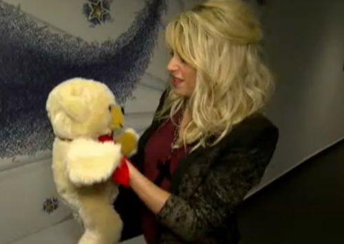 La cantante fue obsequiada por Kons con un osito de peluche para su bebé y ella estampó su firma en varios modelos que ha lucido durante su gira y que serán subastados durante el maratón benéfico los próximos 22 y 23 de noviembre.