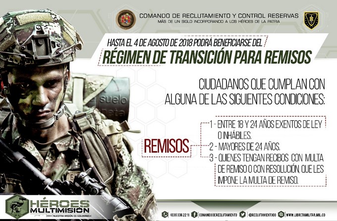 Según el Teniente Coronel, esta amnistía busca resolver la situación militar de más de 100 mil jóvenes en la ciudad, quienes deben presentarse con el registro civil de nacimiento, soporte de exención de ley (si aplica), acta y diploma de grado de bachiller, una fotografía 3×4 fondo azul, una carpeta cuatro aletas blanca, y dos fotocopias de la cédula ampliada al 150%, además del valor de la libreta que tiene un costo de $117.000.