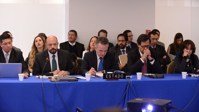 Interamericana de Derechos Humanos (CIDH) durante una audiencia pública sobre el caso Ayotzinapa en su sede de Washington.