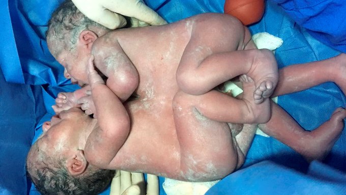 Fotografía cedida por el Instituto Mexicano del Seguro Social (IMSS) hoy, jueves 22 de marzo de 2018, que muestra a unos siameses unidos por el tórax y el abdomen en la ciudad de León Guanajuato (México). EFE/IMSS/SOLO USO EDITORIAL