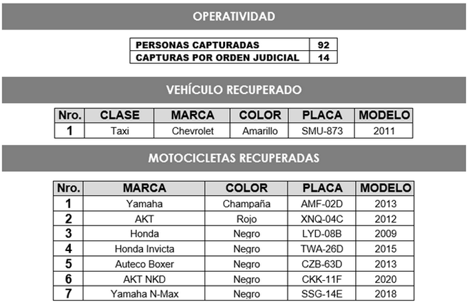 Además de las recuperaciones, la Policía hizo una invitación a la ciudadanía a denunciar este delito para enfrentar la criminalidad y el hurto en el Área Metropolitana.