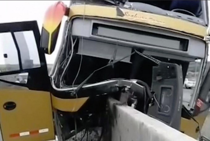 Al parecer, el conductor del autobús se habría quedado dormido y chocó con el muro de contención de un puente.