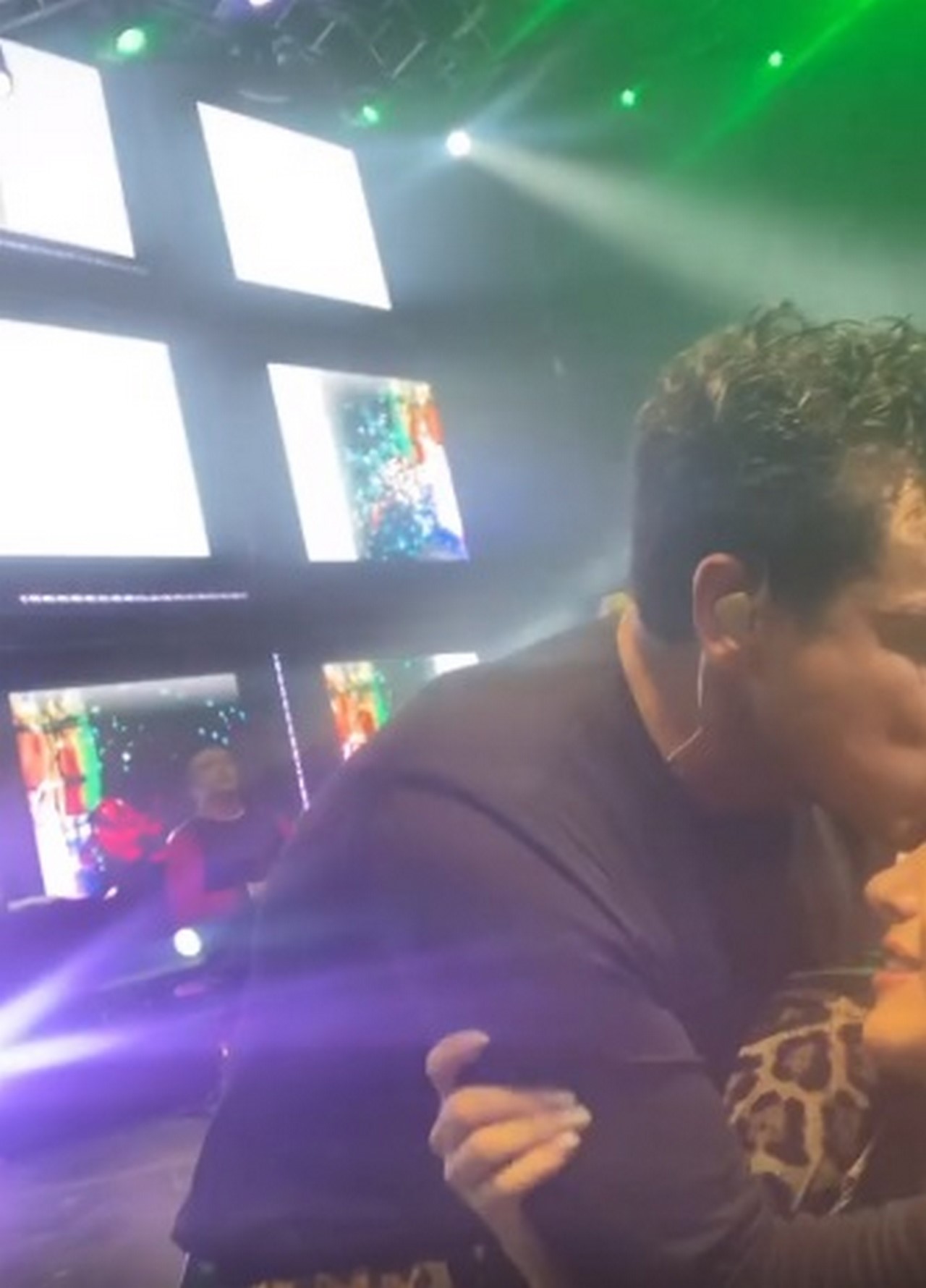 El cantante colombiano comenzó a acercarse sutilmente hacia la mujer, con la que empezó a entonar la canción y se dieron un beso en la boca.