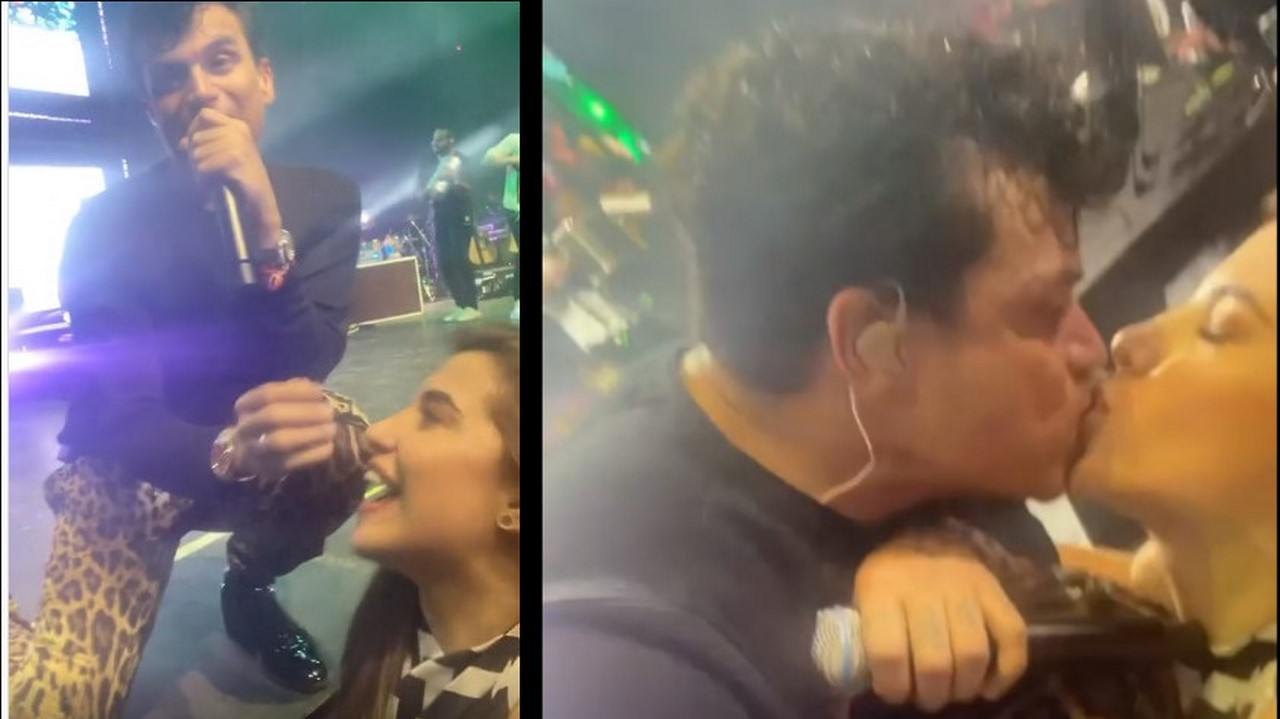 El cantante colombiano comenzó a acercarse sutilmente hacia la mujer, con la que empezó a entonar la canción y se dieron un beso en la boca.