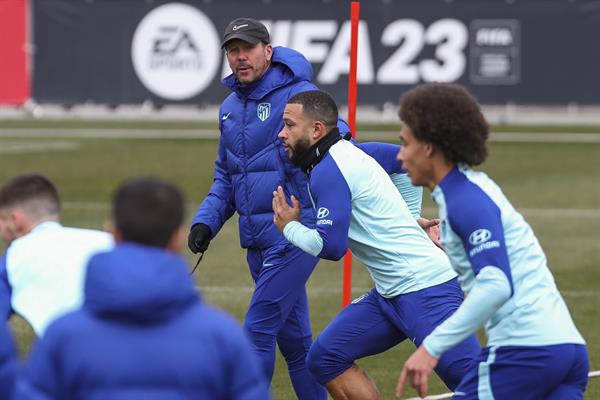 El equipo rojiblanco aguarda a Memphis y Barrios para el derbi. El atacante neerlandés, fuera de la Supercopa de España por la dolencia muscular sufrida en el entrenamiento del pasado martes en Riad, no se ha entrenado con el grupo desde entonces y ha seguido su proceso de recuperación al margen, las dos últimas sesiones sobre el terreno de juego.