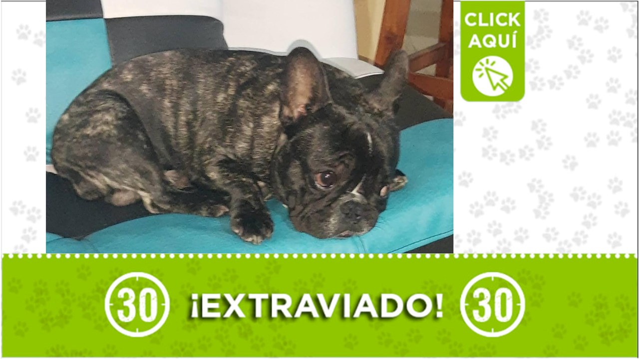 Minuto30.com .- Simón es un lindo bulldog francés que se extravió en El Doce de Octubre. Si lo ha visto comuníquese al whatsapp de contacto.