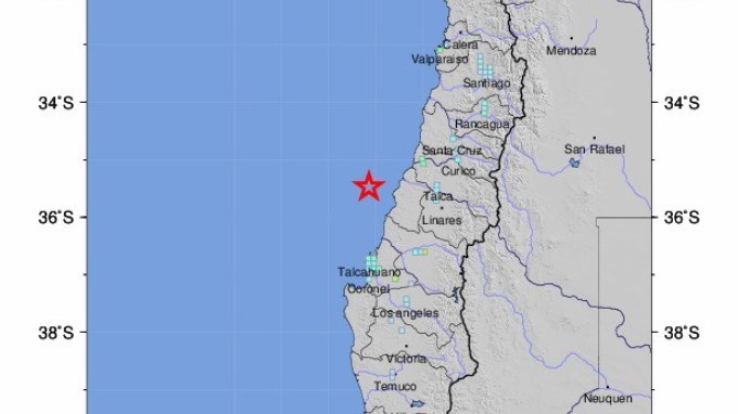 El movimiento telúrico se registró a las 12:57 hora local (15:36 GMT) y su epicentro se localizó a 70 km al oeste de Constitución, ciudad de la región del Maule ubicada a unos 370 kilómetros al sur de Santiago, informó el Centro Sismológico Nacional.