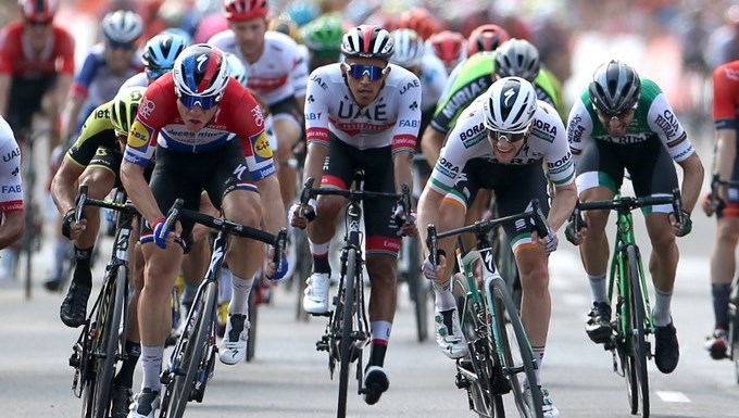 En un esprint muy ajustado, Jakobsen se impuso con un tiempo de 4h.04.16, por delante del irlandés Sam Bennet (Bora) y del alemán Maximilian Walsched (Sunweb).