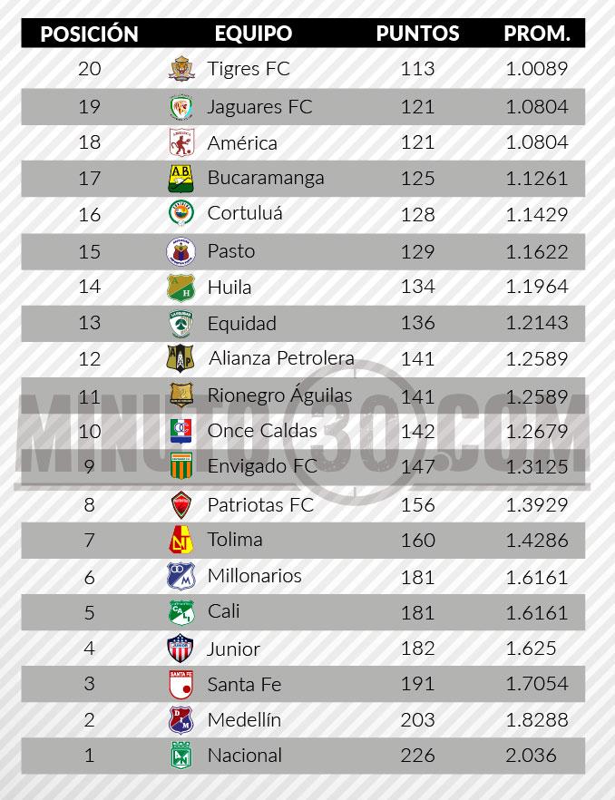 No hay margen, cualquier error significará perder la categoría para Tigres, América y Jaguares. Sin embargo, de esta conversación no pueden olvidarse ni Bucaramanga, Cortulúa o el mismo Pasto, pues un traspiés podría enviar a cualquiera de ellos a la temida B.