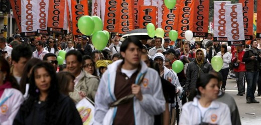 Unos 300.000 profesores de colegios públicos afiliados a la Federación Colombiana de Educadores (Fecode) iniciaron el pasado 22 de abril una huelga nacional indefinida para exigir al Gobierno aumento salarial, un servicio de salud adecuado para los maestros y cambios en una prueba de calidad de la educación que consideran que restringe sus posibilidades de ascenso profesional.