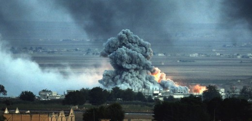 Una explosión tras un bombardeo presuntamente efectuado por la coalición internacional, liderada por EEUU, en el enclave kurdo sirio de Kobani, en la frontera con Turquía. EFE/Archivo