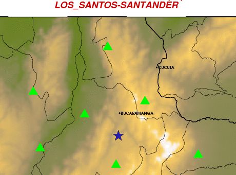 El Servicio Geológico Colombiano informó asi: el día 1 de septiembre de 2012, a las 0:09:47 a.m. hora local se presentó un sismo de magnitud 5.4 con epicentro a 4,95 kilómetros al suroeste de la cabecera municipal de Los Santos (Santander).
