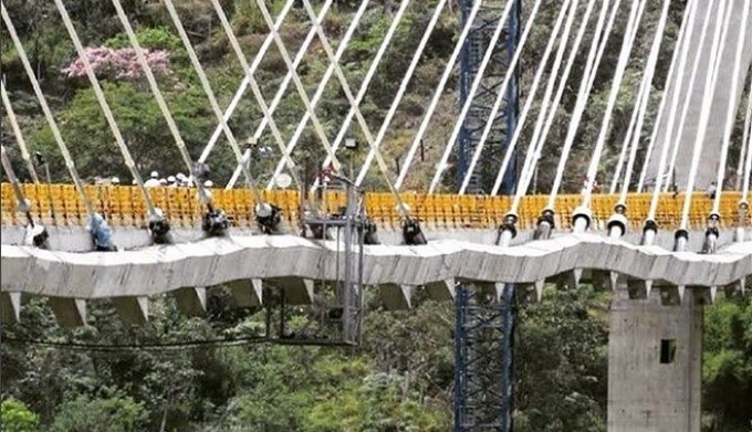 Luego de observar varias fotografías tomadas desde abajo del puente Hisgaura, ubicado en Santander, donde se evidencian varias grietas y deformaciones en las losas, la Sociedad Colombiana de Ingenieros (SCI) aconsejó al Instituto Nacional de Vías (Invías) no recibir la estructura y realizar más estudios.