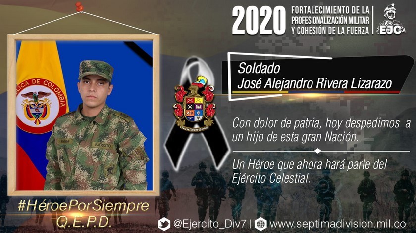 En esta emboscada fue asesinado el soldado José Alejandro Rivera Lizarazo, de 24 años de edad, quien protegía a las comunidades que habitan en esta región del departamento del Chocó.