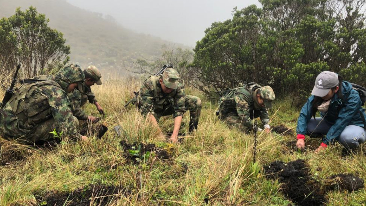 Soldados del Ejército Nacional han sembrado árboles de especies nativas y para así contribuir a la recuperación de zonas afectadas por manos inescrupulosas.