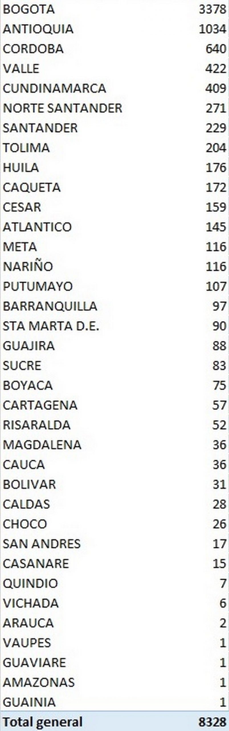 El Ministerio de Salud confirmó este lunes festivo que fueron en total 8.328 los nuevos casos de Covid-19 reportados en el territorio nacional y la cifra de recuperados fue de 14.089.