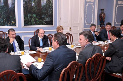 El Presidente Juan Manuel Santos se reunió este martes en la Casa de Nariño con la bancada del Partido de la U, encabezada por el senador Juan Lozano. Casa de Nariño, Bogotá - 24 de abril de 2012 Foto: Felipe Ariza - SIG