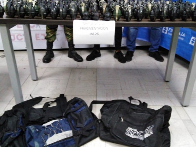 Al abrir los maletines los uniformados se encontraron con las 100 granadas tipo IM 26, explosivo con gran potencial destructivo.