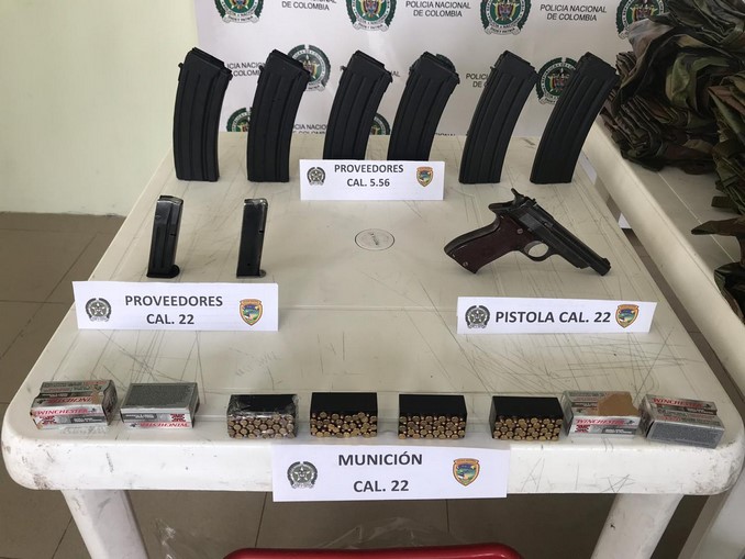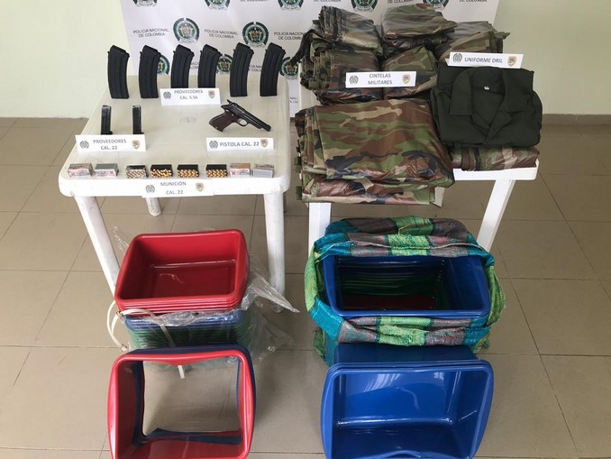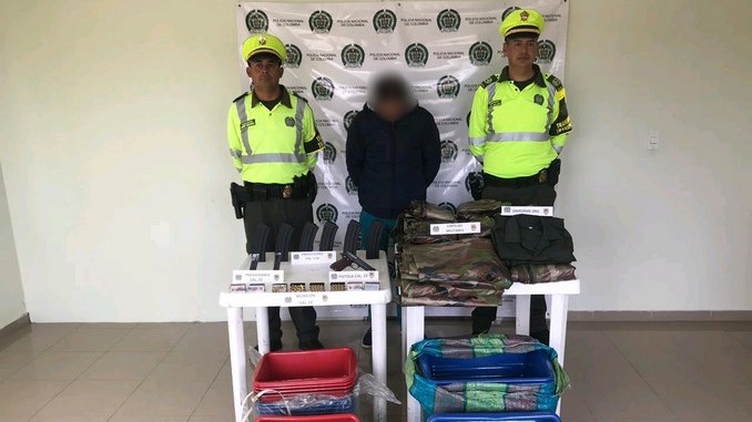 La detención se efectuó en la vía que conduce del municipio de Duitama a Sogamoso, allí agentes detuvieron al sujeto que conducía un camión tipo furgón de servicio público, al interior del vehículo se encontraron dos paquetes de recipientes plásticos, un arma de fuego tipo pistola calibre 22mm, 200 cartuchos 22mm, 2 proveedores para pistola, 6 proveedores para fusil calibre 5.56mm, un uniforme tipo dril y 25 cintelas camufladas tipo carpa militar.