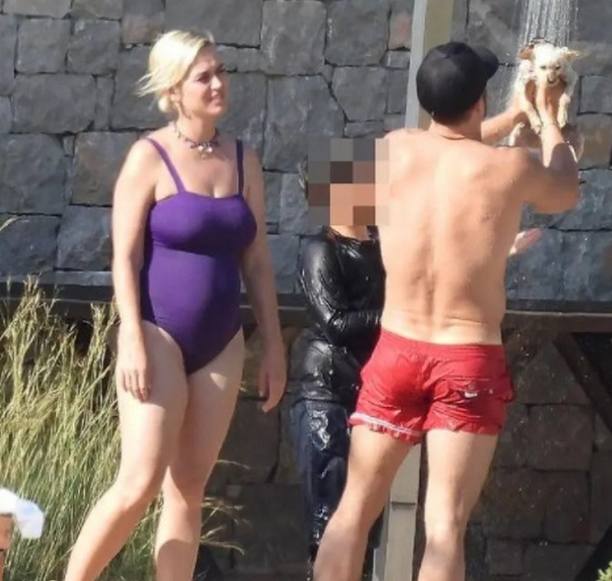 ¿Subidita de kilos? Katy Perry con traje de baño morado en Grecia