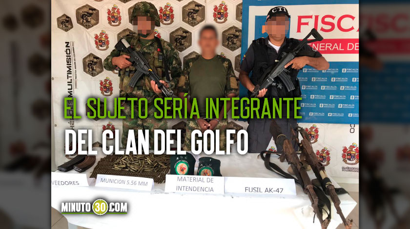 Durante su aprehensión le fueron incautados 2 fusiles, 960 cartuchos calibre 5.56 y 7.62, 5 equipos de campaña y uniformes de uso privativo de las Fuerzas Militares.