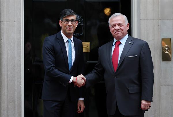 Londres, 15 feb (EFE).- El primer ministro británico, Rishi Sunak, recibió este jueves en Londres al rey Abdalá II de Jordania, con el que coincidió en la necesidad de asegurar "una pausa humanitaria inmediata" en la Franja de Gaza a fin de sacar a los rehenes en poder del grupo islamista palestino Hamás y permitir la entrada de ayuda, informó Downing Street.
