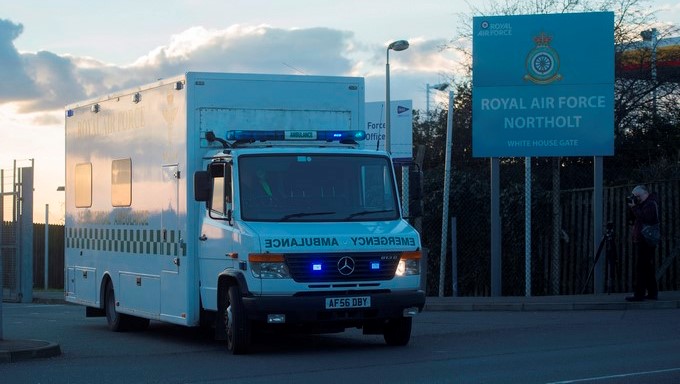A Royal Air Force ambulance belived to be carrying nurse Pauline Cafferkey