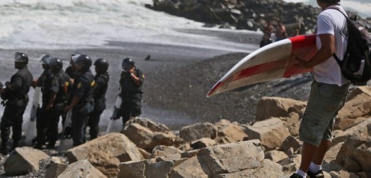 La protesta llevó a la intervención de agentes de la Policía Nacional, que incluso ingresaron al mar para sacar a la fuerza a varios surfistas y detuvieron a uno de sus dirigentes, lo que motivó una oleada de críticas en los medios locales y las redes sociales.