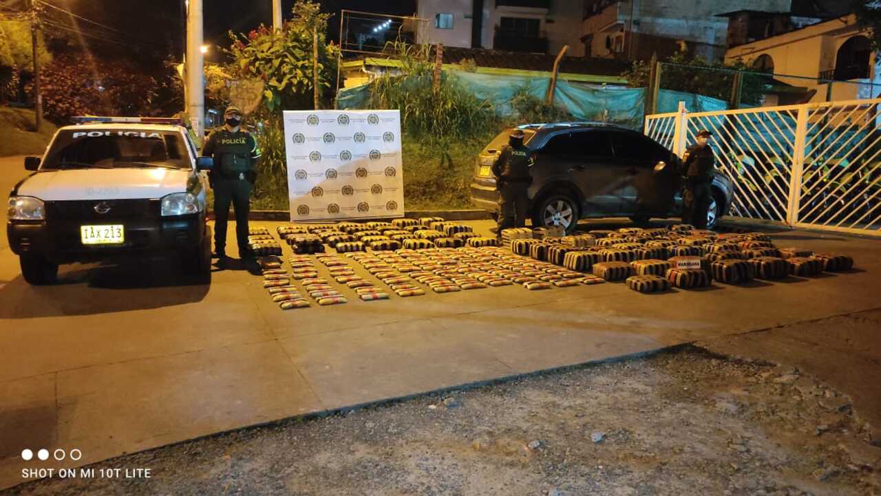 En el corregimiento de Versalles municipio de Santa Bárbara, se logró la incautación de 600 kilos de marihuana tipo Creepy que eran transportados en un vehículo tipo campero, el conductor al notar la presencia policial emprende la huida del lugar dejándolos abandonados.