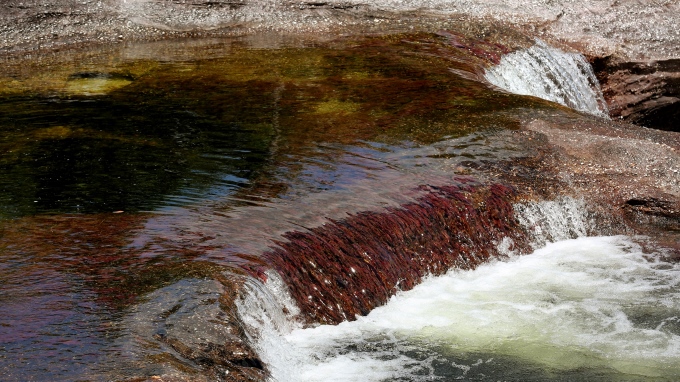 Caño Cristales, un área protegida regional, es también denominado “el arco iris que se derritió” por las algas que le dan tonalidades de rojo, amarillo, violeta, azul y rosado.