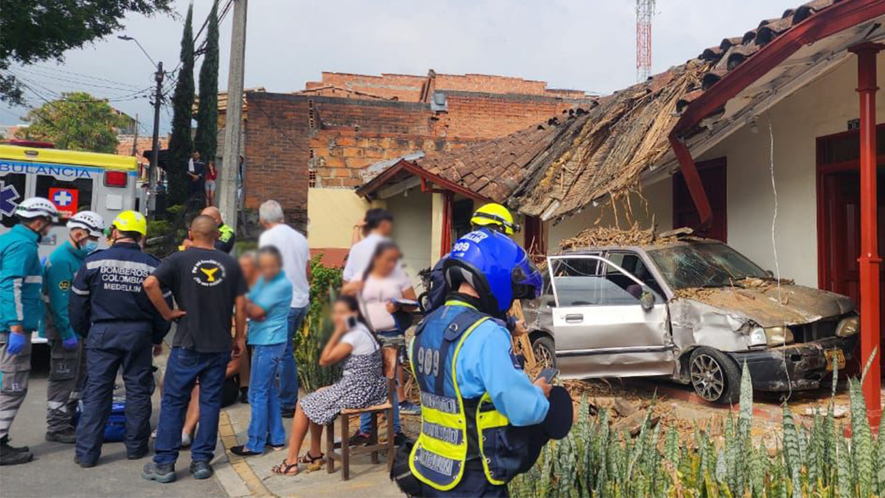 Dagrd y Bomberos atendieron incidente en San Antonio de Prado: carro chocó contra fachada de una casa