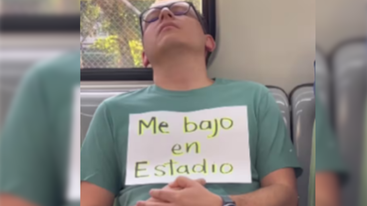 Con un letrero que decía “Me bajo en Estadio”, los pasajeros ayudaron al concejal a no perder su parada.