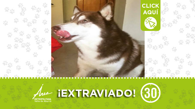 Este Husky Siberiano responde al nombre de “Tanner”. Se perdió el día martes 27 de agosto en el barrio Villa Lia, por Pilsen de Itagüí.
