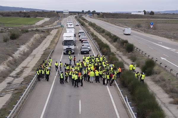 Madrid, 11 feb (EFE).- La primera jornada del paro indefinido convocado por transportistas autónomos y agricultores en España transcurrió con cortes en varios carreteras en varios puntos del país, causando retenciones por las marchas lentas de vehículos coincidiendo con el regreso a las grandes ciudades tras el fin de semana.