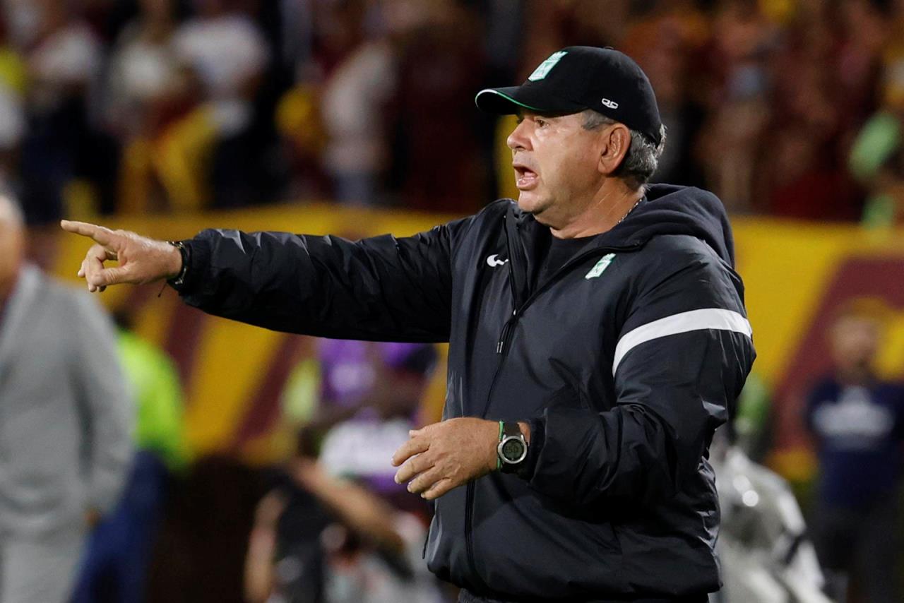 El entrenador de Nacional Hernán Darío Herrera dirige este 26 de junio de 2022, en el partido de la final de la Primera División de fútbol colombiano entre Deportes Tolima y Atlético Nacional en el estadio Manuel Murillo Toro en Ibagué (Colombia). EFE/Mauricio Dueñas Castañeda