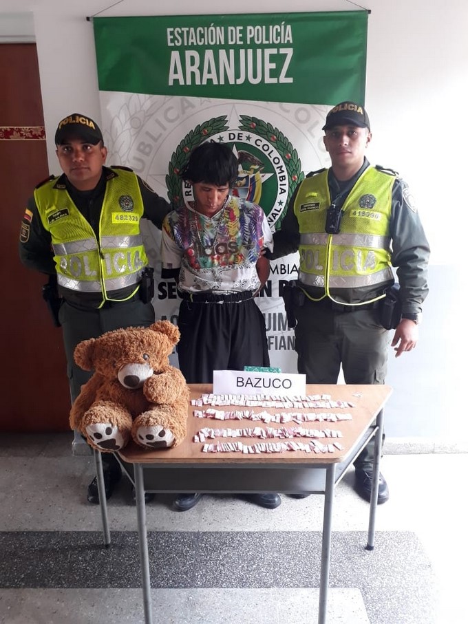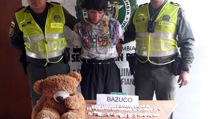 Al ser indagado por los policiales y tras la respectiva requisa se encontró que al interior del osito se encontraban 200 dosis de bazuco listas para su distribución.