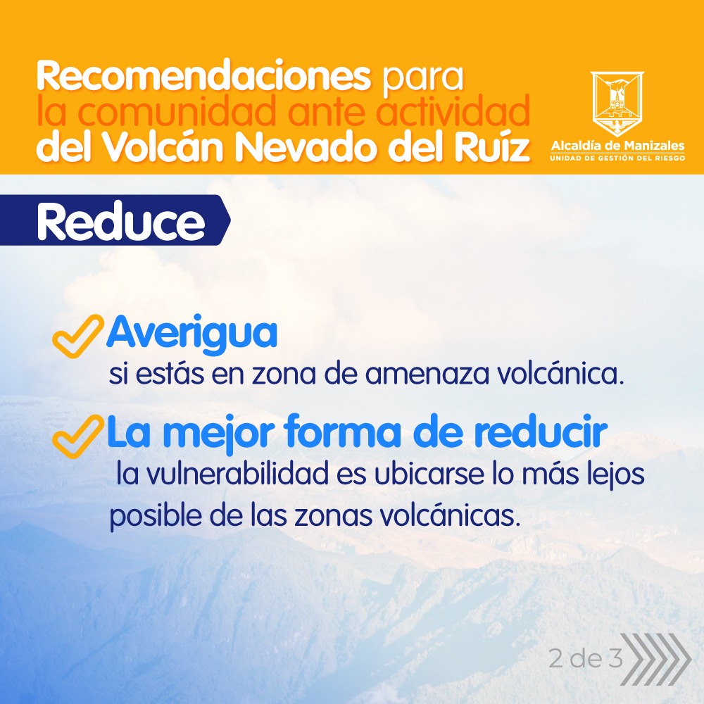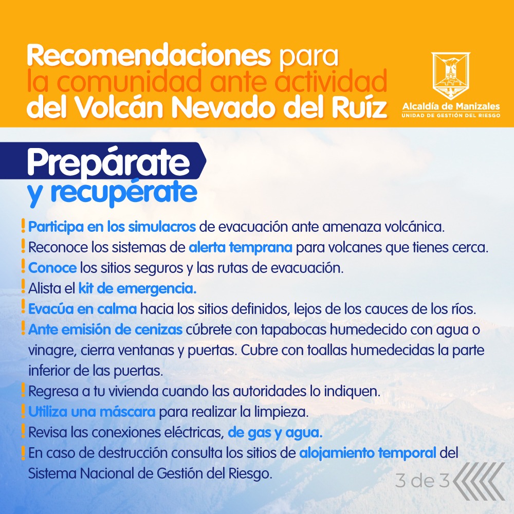 Recomendaciones para las zonas aledañas al Volcán del Ruiz