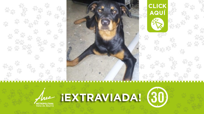 Esta perrita se perdió en Copacabana. Si usted la ha visto por favor llamar a los números: 3123574322 – 3007707601. ¡Difunde!